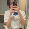 【upskirt2037逆さ撮りJK】お友達と買い物中にフロントに刺繍があしらわれた白Pを撮られるプリプリのお尻がエロいJK